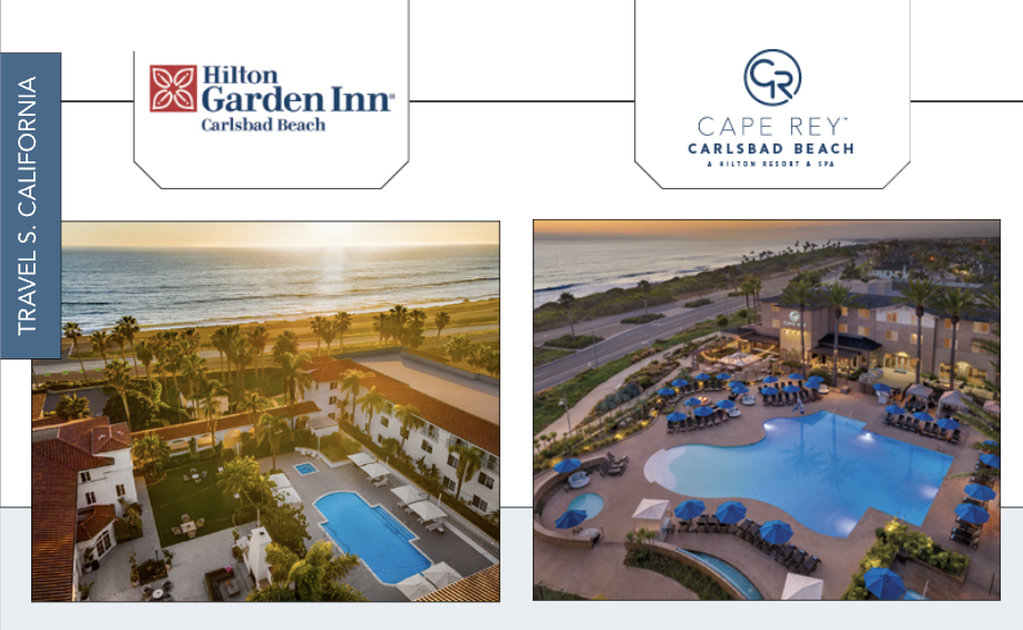 The Hilton Garden Inn Carlsbad Beach hotel in Carlsbad, CA is directly across from the beach on Pacific Coast Hwy. and about 25 miles north of San Diego. Located just minutes from LEGOLAND California, Carlsbad Flower Fields, Carlsbad Premium Outlets and within a short drive from SeaWorld, San Diego Zoo and Wild Animal Park, the Hilton Garden Inn Carlsbad Beach is a recently renovated, spacious and welcoming, coastal hotel.
