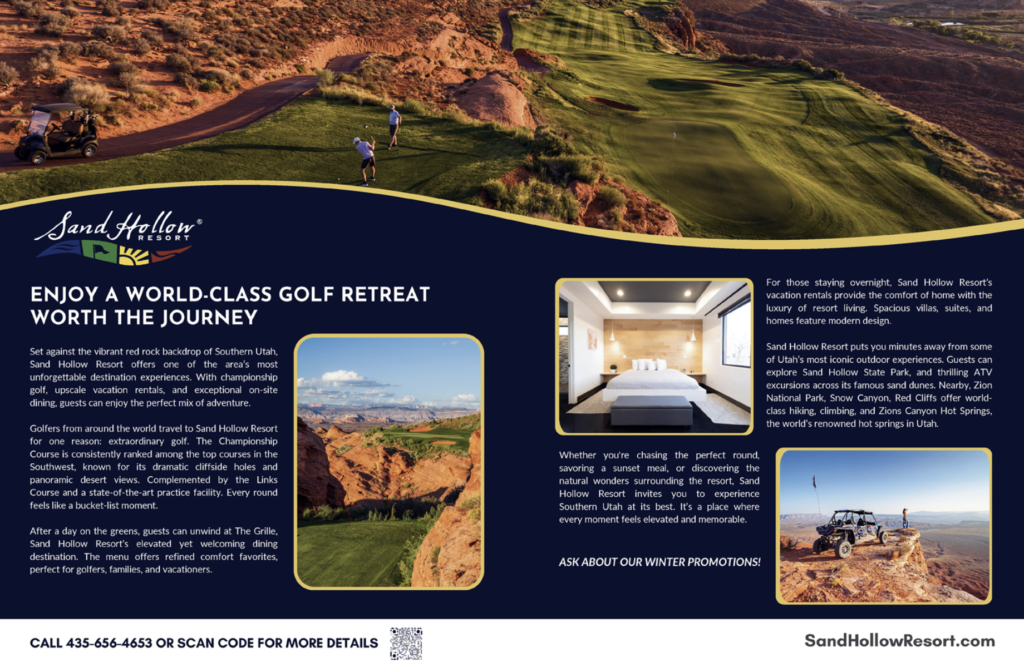 Whether you’re chasing the perfect round, savoring a sunset meal, or discovering the natural wonders surrounding the resort, Sand Hollow Resort invites you to experience Southern Utah at its best. It’s a place where every moment feels elevated and memorable.